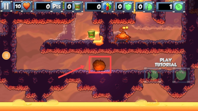 2、玩家在关卡操控橙色毛球角色移动,避开怪物规划路线,尝试获取绿色罐子道具,拥有无限挑战。