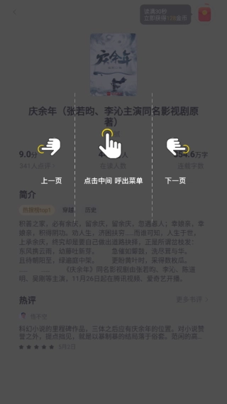 点击屏幕中间可呼出菜单,滑动左右两边可进行翻页
