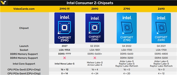 其中,Z990芯片组支持多达48条PCIe通道,比现在的Z890 28条可以说有了质的飞跃。