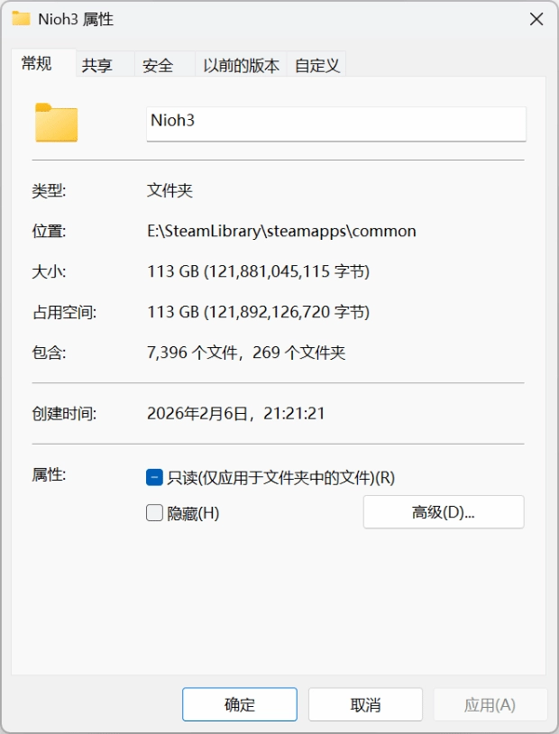 硬盘占用方面,通过浏览《仁王3》本地游戏文件夹可以发现,其容量需求不小,实际占用为113GB,体量与众多3A大作相当,想要安装的玩家需要准备腾腾硬盘空间。