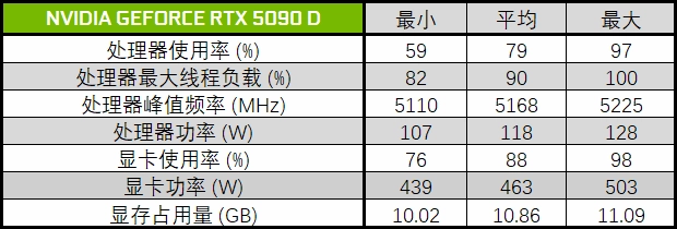 4K分辨率(DLSS 65%)RTX 5090 D硬件占用率