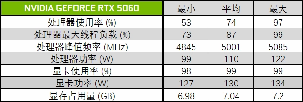 1080P分辨率(DLSS 65%)RTX 5060硬件占用率