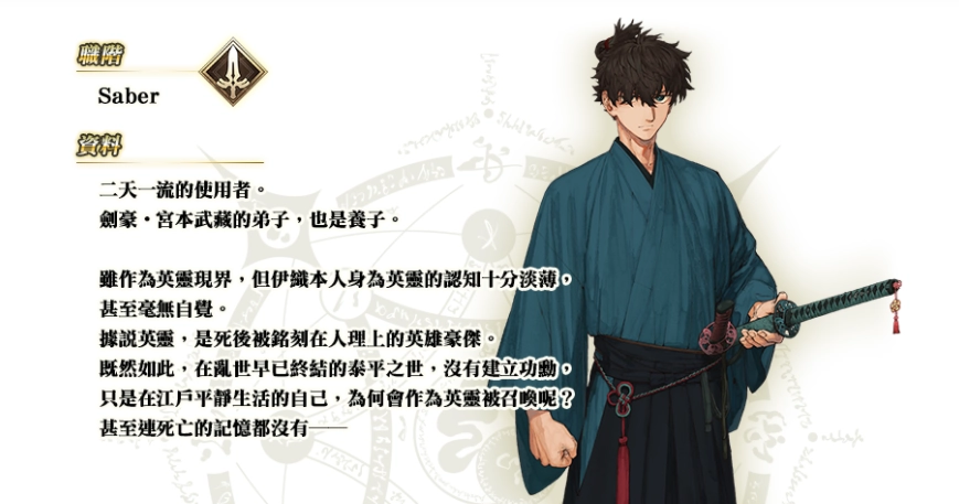自2025年11月5日(三)16:00至2025年11月18日(二)12:59期间,将登场包含限定从者「★5(SSR)宫本武藏〔Berserker〕」在内的2骑从者,3种限时概念礼装「★5(SSR)二天一流之女」、「★4(SR)萍水相逢」及「★3(R)旗鼓相当」的卡池开放。