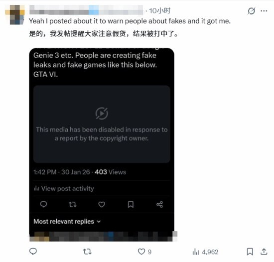 甚至连用来举例提醒大家别被AI《GTA6》视频欺骗的帖子都被下架了!