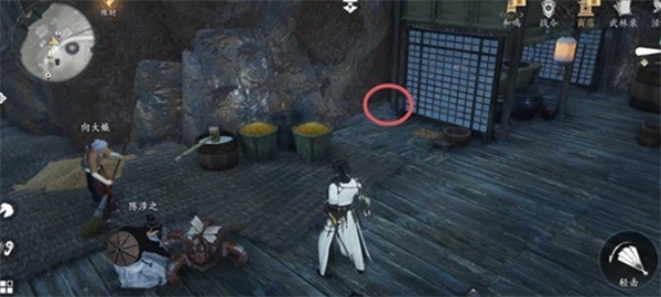 3、前往任务标注地点,与【陈涉之】交谈。铁尺位于红圈标记处,拾取后交给他。