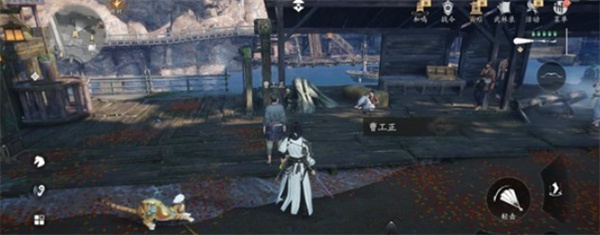2、在图示P2位置找到【曹工匠】,对话后抬头往左上方看,可看到【陈涉之】站在悬臂上。