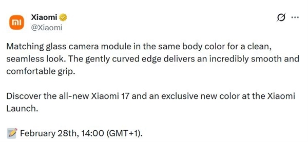 小米通过社交平台发布预告,宣布将于2月28日召开全球发布会,届时备受海外用户期待的小米17国际版将正式亮相。
