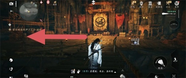 沿箭头方向走过桥,桥后是一片空地,左转进入。