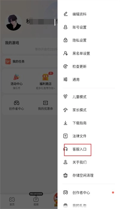 3、然后会在右侧的位置弹出侧边栏,在侧边栏功能中找到【客服入口】选项并点击;