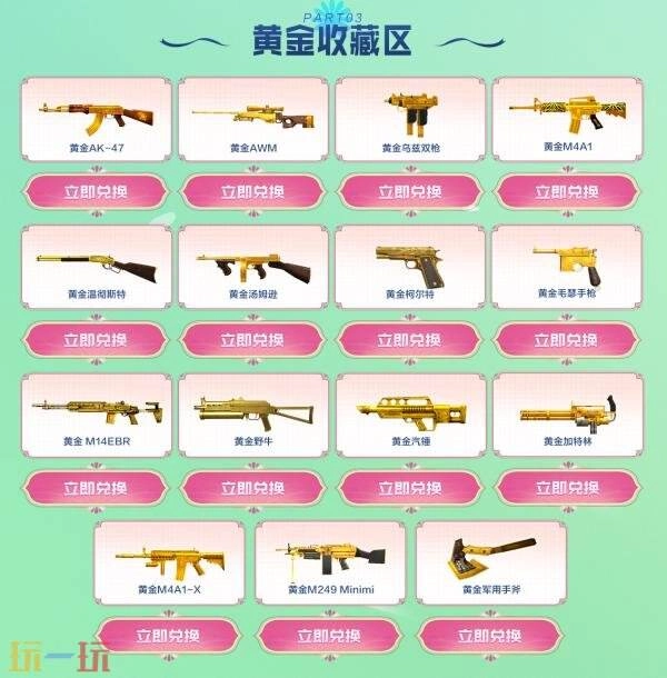 参与方法:使用自选军火体验卡、自选30天黄金体验卡或永久黄金收藏卡即可在指定奖池内自选心仪武器道具领取。