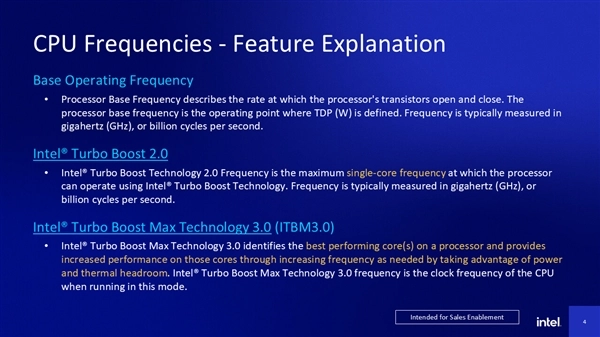 Intel还着重指出,实际频率的高低,还会受到平台功耗限制、散热条件等多方面因素的影响。