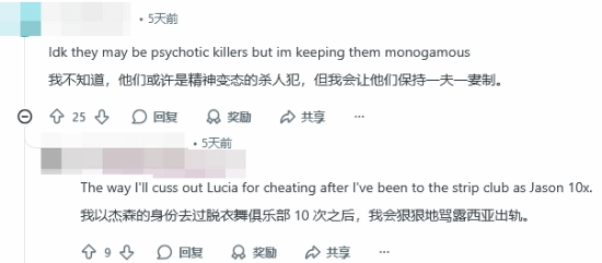 还有一些玩家发动“鬼脑”,开始想象露西娅找女伴等其他激进的亲密画面。