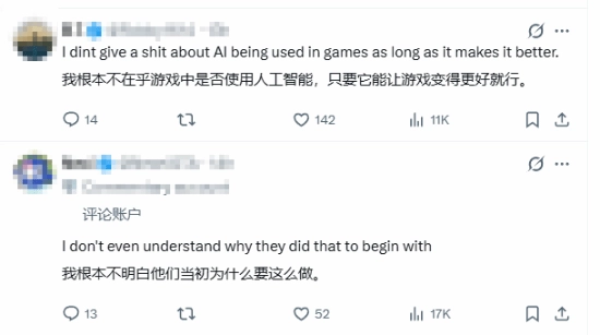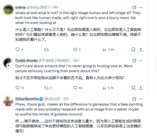 有玩家对开发团队最初选择使用质量欠佳的AI画作感到疑惑,也有玩家认为,用劣质AI内容作为游戏素材试图蒙混过关,这种做法本身并非长久之计。