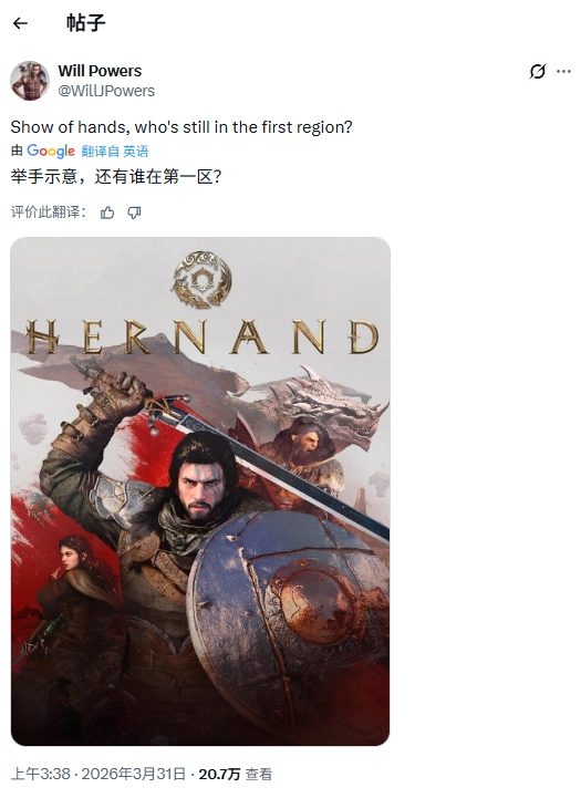 游戏公关总监威尔·鲍尔斯在社交媒体上发布了一张修改后的游戏封面图,将标题改为“赫南德”,并配文询问:“举手示意一下,谁还在第一个区域?”该帖文进一步推高了玩家对这一话题的讨论热度。