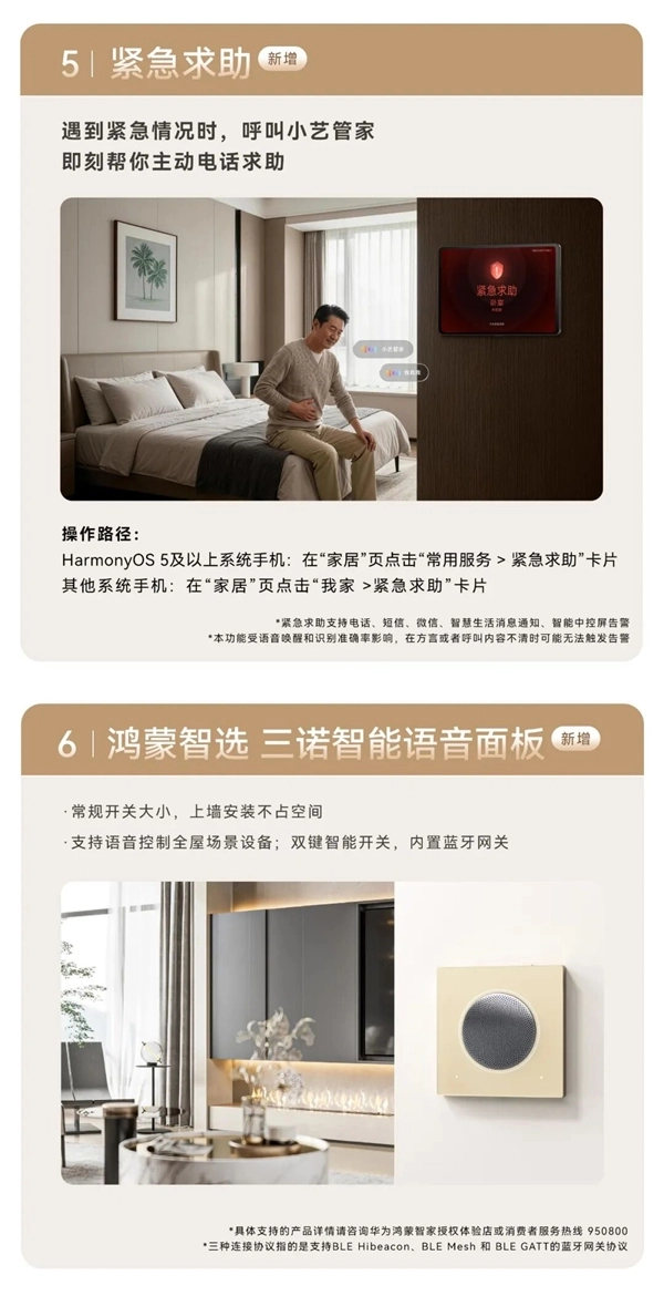 家里有老人小孩的会很喜欢紧急求助功能,遇到突发情况呼叫小艺,系统会自动拨打电话、发送短信和微信通知,同时中控屏也会发出告警。
