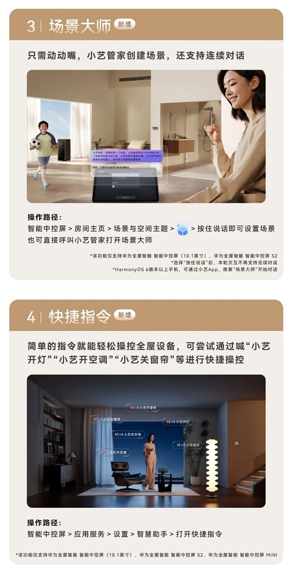 小艺的理解能力也全面升级,能听懂更复杂的口语指令,比如关掉除了茶几以外的灯、调高孩子房间的空调,一句话就能联动全屋设备,不用反复说明。