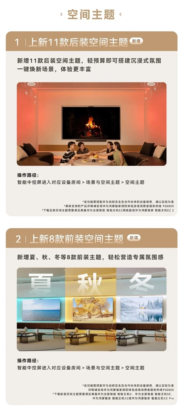 同时上线十一款后装空间主题和八款前装主题,一键切换就能改变家里氛围,低成本打造沉浸式家居。