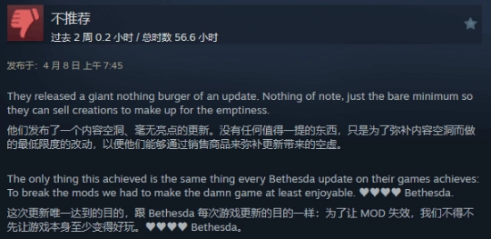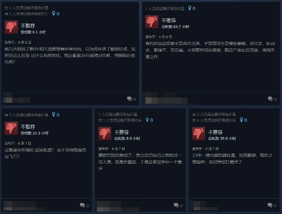 差评方面,玩家批评此次更新“于事无补”,无法令人满意,并且似乎还存在运行稳定性的问题。