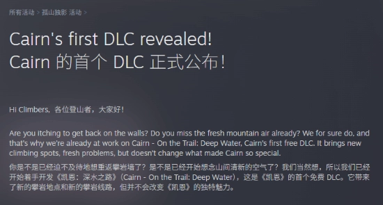 整体来看,这个DLC依旧以攀岩玩法为主,但会加入新的山体、路线以及挑战内容。