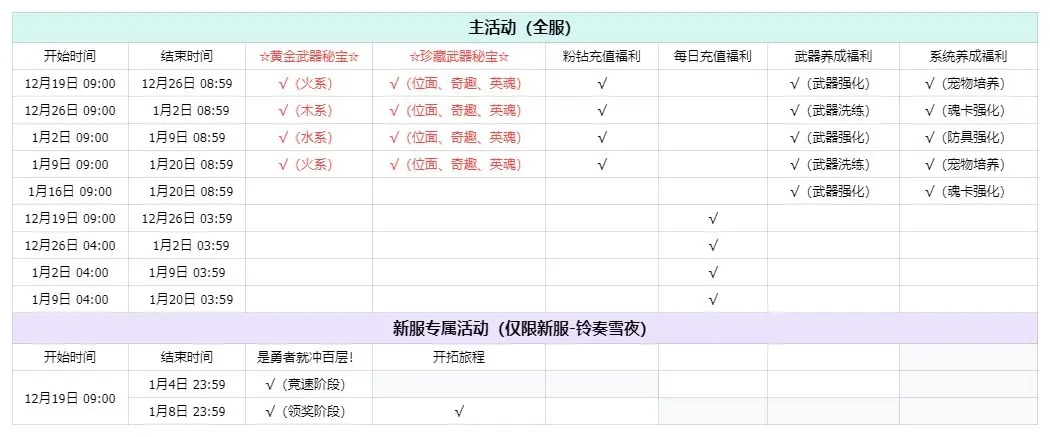 系统所提供的培养福利涵盖魂卡强化、宠物培养以及防具强化这三项内容,实行的是双周轮换制度。在宠物培养与魂卡强化的周期内,能够显著减少资源的消耗,进而加快宠物与魂卡的成长进度。而防具强化周期会和武器强化周期交替进行,如此便构成了一个完整的装备提升循环。在此建议,各位可依据福利周期来合理规划资源的投入。