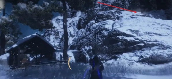 2.来到图中位置,旁边有个气流过去踩,来到山顶,山顶上方第一个喵喵挑战。
