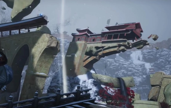 2、来到瀑布这里,借助机关直接飞上去,上来后在石头上就可以看到了。