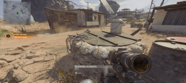 在《使命召唤黑色行动7》的暴露行动任务里,经历生物武器暴露并进入漂浮岩石的梦境序列之后,借助动能跳跃能力登上沙质台阶,在顶部封闭的井口位置,能够找到标注为化作怪物的马契特刀这一情报物品。
