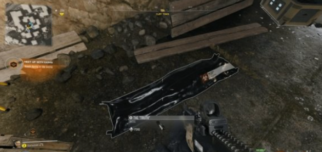 在《使命召唤黑色行动7》的深入敌后任务里,当玩家执行与卡玛汇合这一目标时,在汇合点的洞穴之中,能够在卡玛身后的尸体袋上找到一件标注真相的情报物品。此位置所对应的线索提示为:死者不会下沉,只会漂浮这样的隐喻。