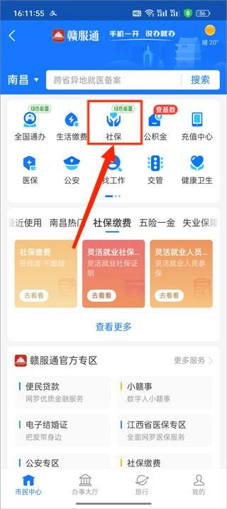 进入社保后,找到社保缴费模块,然后选择【城乡居民医疗保险缴费】