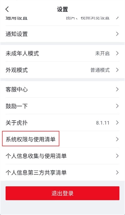 之后再返回设置功能界面,点击【系统权限与使用清单】选项;