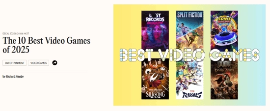 在刚刚斩获2025年金摇杆奖“终极年度游戏”这一殊荣后,法国游戏工作室Sandfall Interactive的首部作品《光与影:33号远征队》又将一项分量十足的奖项收入囊中。昨日,《时代》杂志公布了“2025年十大最佳电子游戏”的评选结果,《光与影:33号远征队》荣登榜首,《死亡搁浅2》与《羊蹄山之魂》则分别占据第二和第三名的位置。值得一提的是,该榜单去年的冠军是《龙腾世纪4》。