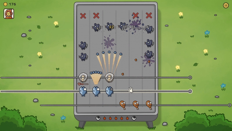 在本作中,玩家将化身烤串大师,不再像以往一般被动摆放防御单位,通过直接拖拽烤杆来操控食材(防御单位)进行瞄准射击、反弹与击退,操作直观,反馈爽快。这是在肉鸽+塔防这一热门赛道中,《别拽了!烤串师傅》提供给玩家的全新体验。