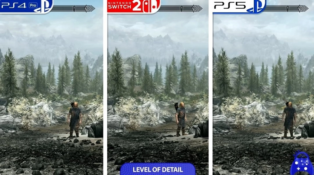 本次更新着重对视觉效果进行了强化,游戏世界在整体呈现上拥有更为清晰的细节、更高质量的纹理、经过改进的阴影效果以及更先进的光照系统。这让Switch 2版本的《天际》和原版Switch所呈现的视觉体验存在显著差异。从实际表现来看,此次更新把游戏从原版Switch的低画质设定进行了一定程度的提升,绘制距离、环境细节以及场景的整体密度都有所改善。有消息称,部分图形参数(其中包括绘制距离)甚至超过了PlayStation 5版本。