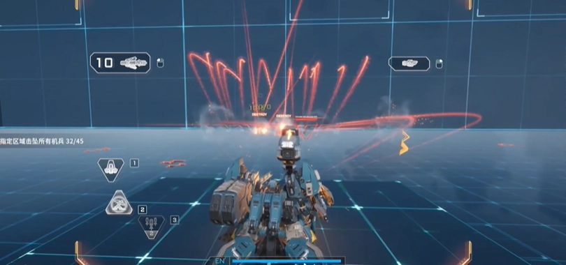地面单个目标使用左键点射,飞行目标需在炮台模式下分别锁定。