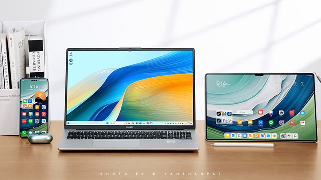在跨端互联方面,凭借“超级终端”让笔记本与手机、平板电脑完全打通,在日常传输数据、应用接力、智能剪切等操作中,打造出无缝体验,尤其是在做一些调研、数据报告时,各种素材在超级中转站中灵活切换、分配,办公效率大大提升,同时还消灭办公桌上那些一条条杂乱的数据线。