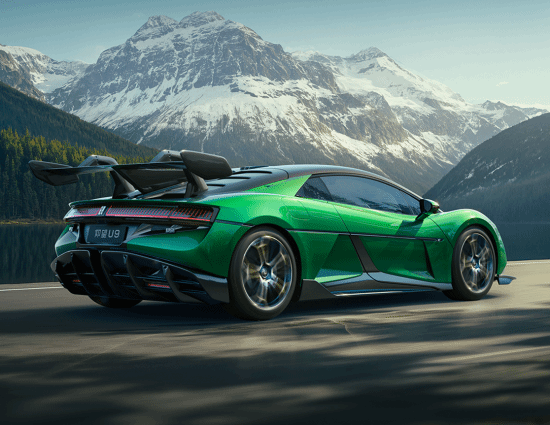 灵感汲取自全球最快汽车仰望U9 Xtreme征服纽北“绿色地狱”的史诗级瞬间,车窗外的森林因极速而模糊,深浅交叠的绿交融为独一无二的色调。