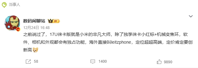 12月25日消息,小米17 Ultra将于今晚正式发布。目前大家讨论最多的,是网上流传的该机型徕卡版本的定价,有消息称其价格或许会超过一万元。