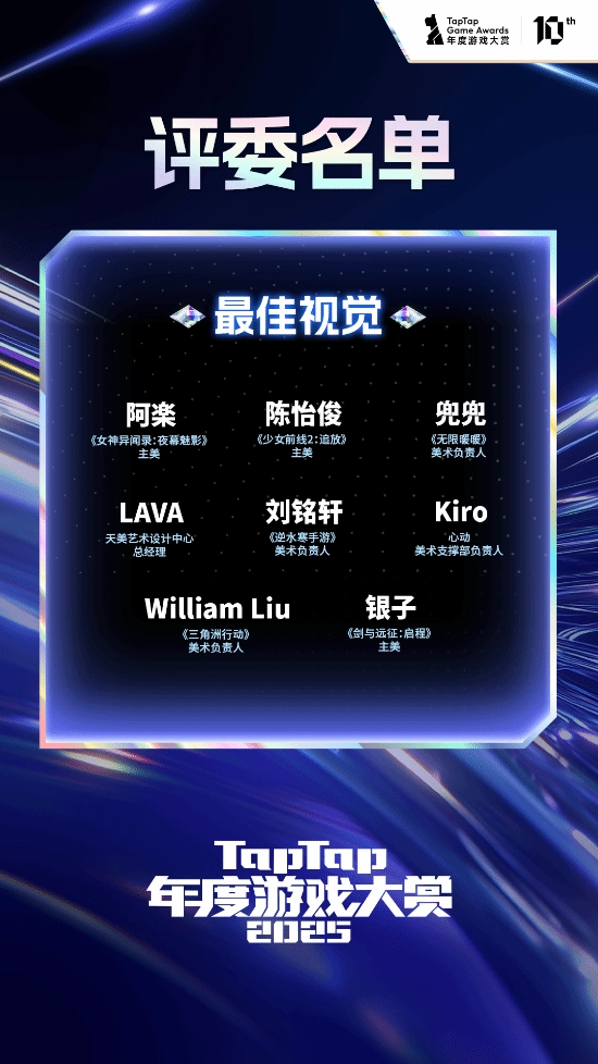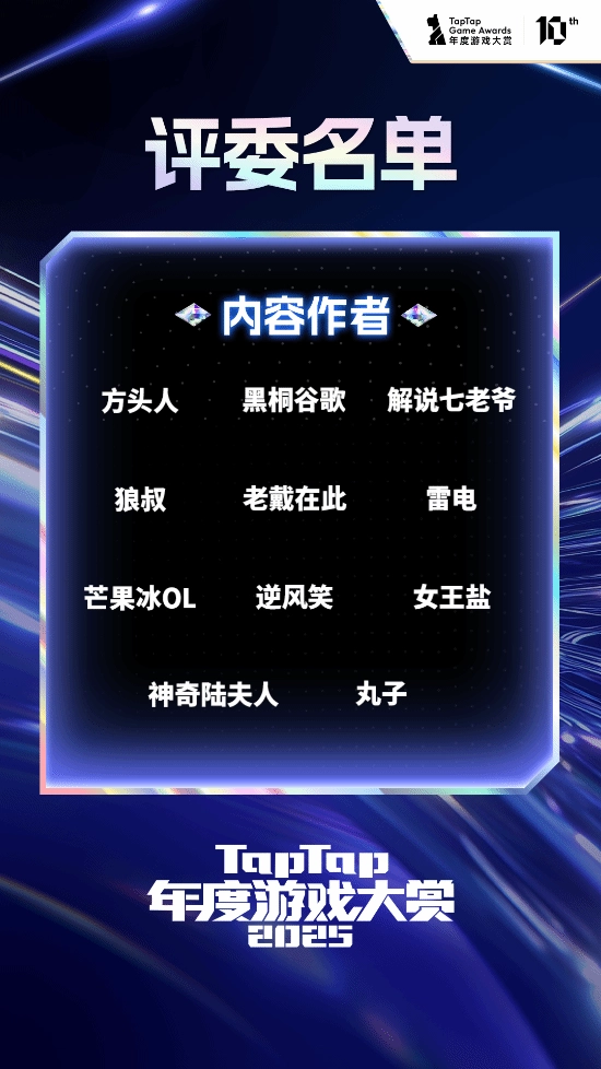 2025 TapTap年度游戏大赏正式拉开帷幕!本届TapTap年度游戏大赏迎来了具有里程碑意义的第十届。自2016年创立以来,这一大赏始终秉持“发现好游戏”的初心,持续聚焦游戏创作本身,凭借专业的视角以及对玩家与开发者的尊重,记录下每一年那些最值得被铭记的游戏。