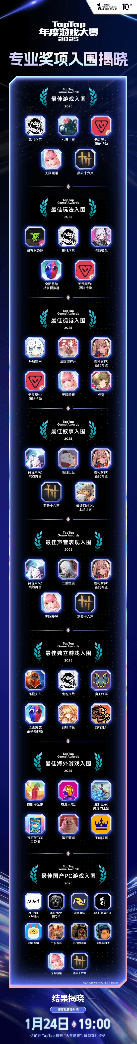 专业奖项方面,2025 TapTap年度游戏大赏的入围名单也已同步揭晓。