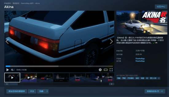 为什么突然免费?因为开发商的新作《Akina》(设定在90年代日本的街机赛车)即将于2026年初发售。这波送前作,可能是为了给新作攒人气。