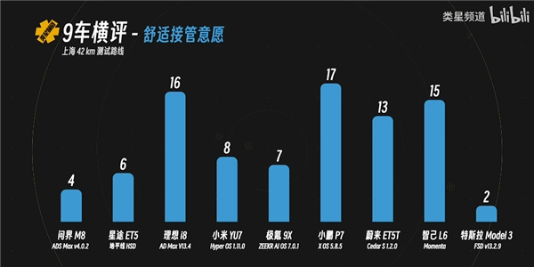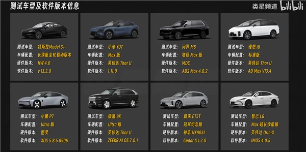 参与本次测试的车型涉及华为、小米、特斯拉、地平线、蔚来、理想、小鹏、极氪、Momenta这九种不同方案,并且都是各品牌量产的最新版本。主持人特别指出,此次测试完全没有任何推广和广告成分,还被称作“最严测试”。