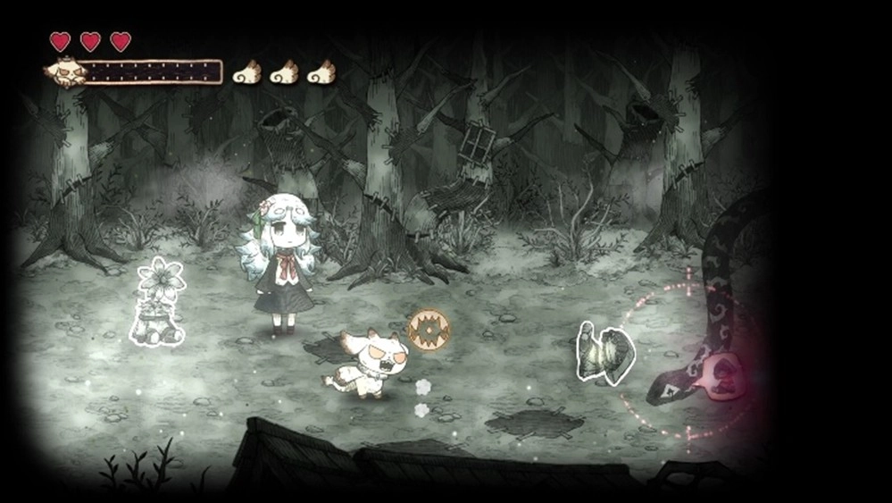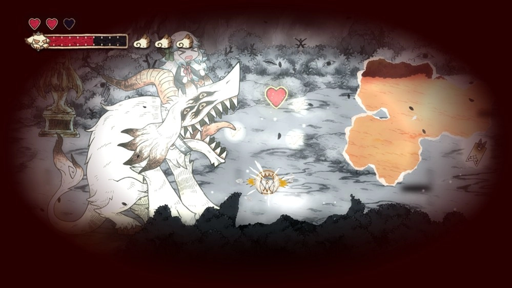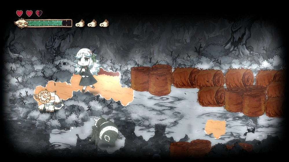 不只挡路的纸怪物,就连行进方向上的碍事岩石、树木与死路,甚至是怪物传来的讯息也能对付!?凡是以黑白描绘的事物,全都能被吞食并破坏!