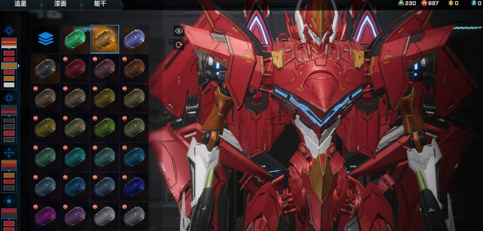 在《解限机》里,为矛隼二号机精心涂装能让它独具个性。想还原经典 EVA 二号机配色的话,所需颜色有茜草红、信号黑、浅灰、马鞍棕等。头部用茜草红、浅灰等搭配,手臂、躯干、腿部等各部位也有对应分色方案。主武器与副武器同样有着专属色彩配置。感兴趣的小伙伴快来看一看!