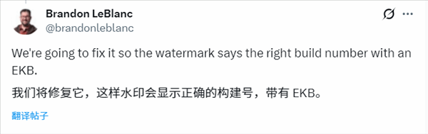 但好消息是,微软Windows团队的Brandon LeBlanc宣布,公司将很快通过一个EnablementKB(EKB)来修复水印中的版本号显示问题。