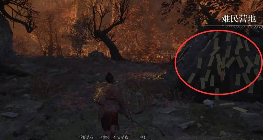 在鸟人沼泽,击败僰人古巫。随后穿过狭长的隧道,沿着岔路返回难民营地。