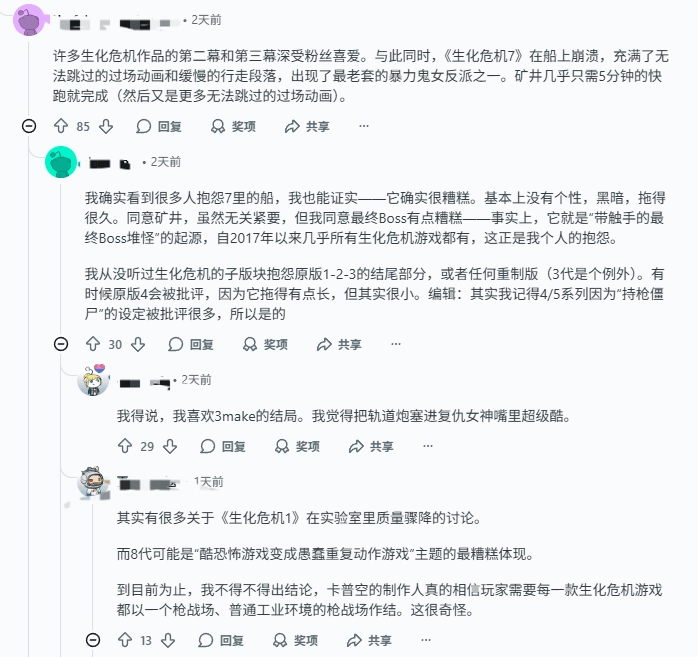 近日,国外社交平台Reddit上一篇题为“为何《生化危机7》并非受到所有玩家青睐?”的帖子,在玩家群体中引发了热烈讨论。