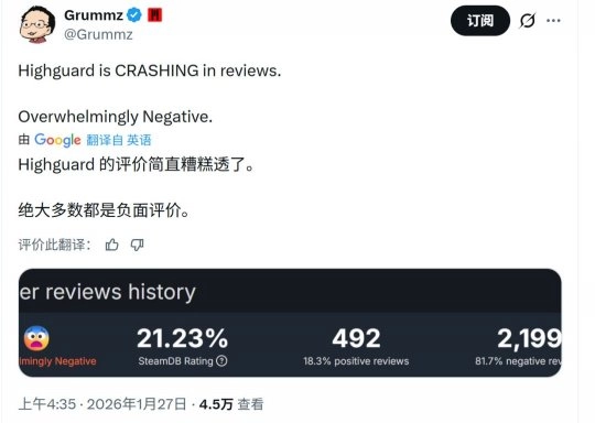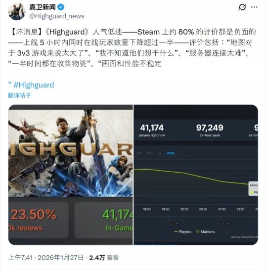 由前《泰坦陨落》开发团队打造的全新游戏《巅峰守卫》今日正式登陆Steam平台,不过玩家给出的评价几乎呈现一边倒的负面态势。尽管该作在Steam上的同时在线玩家峰值已接近10万人(具体为97249人),但众多玩家在体验过程中遭遇了各式各样的问题。