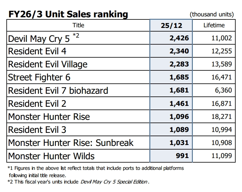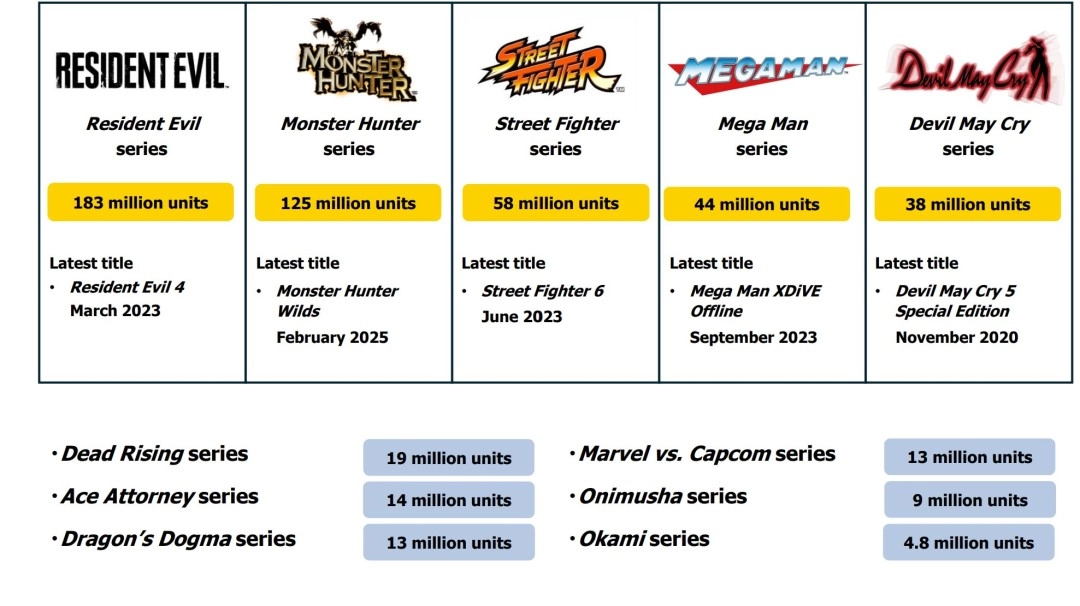 Capcom最近更新的旗下大作销量数据: