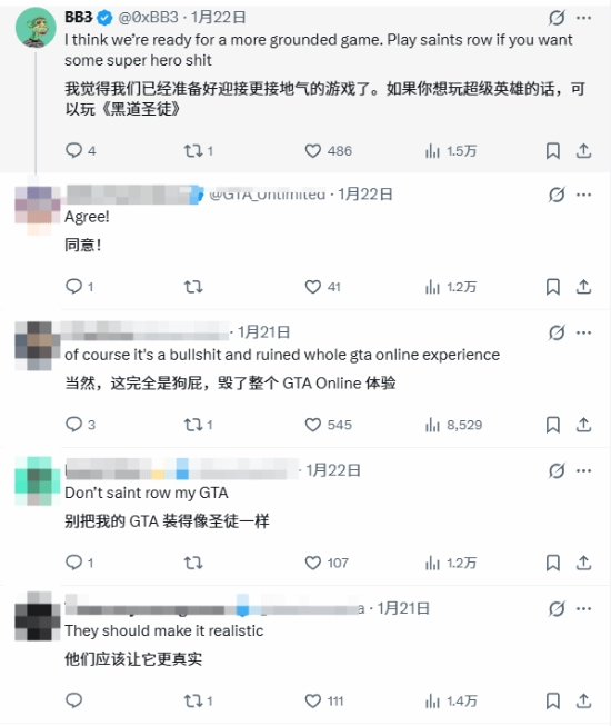 海外社交平台 X 上,主打 《GTA6》 内容的账号 GTA 6 Unlimited 发起相关话题讨论,直言 “R 星绝不该在 《GTA6》 线上加入飞行摩托和未来武器”,并发起观点投票。而评论区的玩家态度高度一致,均对该提议表示反对。有玩家表示 “大家都期待一款更写实的作品”,也有玩家持相对温和的观点,认为 “可以加,但绝不能让这些内容过于强势”。