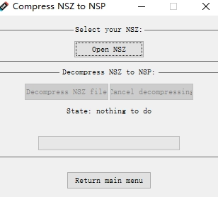 2、点击后显示如下界面,按照下面的提示打开NSZ文件,准备开始转换。